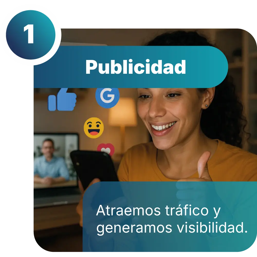 La publicidad digital es el punto de entrada del sistema. A través de campañas estratégicas en plataformas como Meta y Google, se atrae a personas con interés real en el producto o servicio, utilizando segmentación precisa, mensajes claros y optimización continua para maximizar la calidad del tráfico.